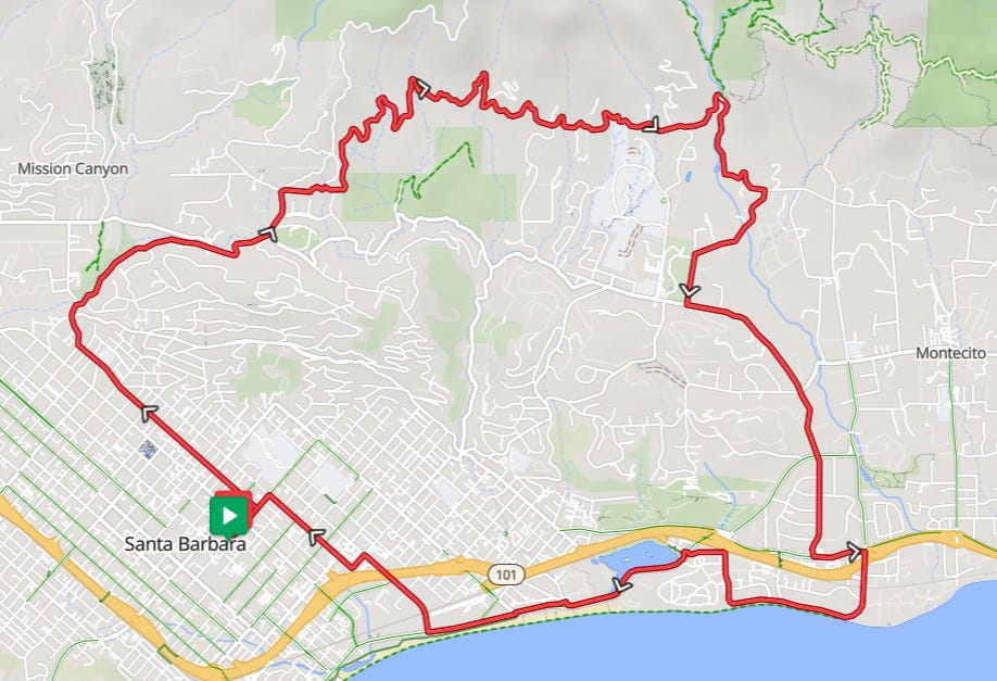 “This route combines the best of all Santa Barbara cycling has to offer,” Anna said later, citing stunning ocean views, historic districts, local businesses like Handlebar, and glamorous Montecito. “This is a true mountain-to-sea ride.”